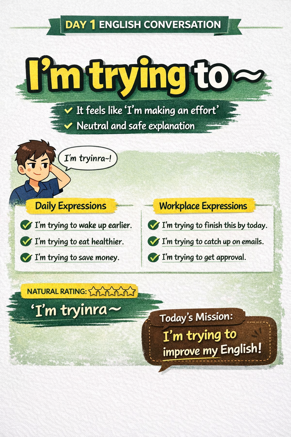 → 공식적 / 메일·보고용 - I’m doing my best to ~